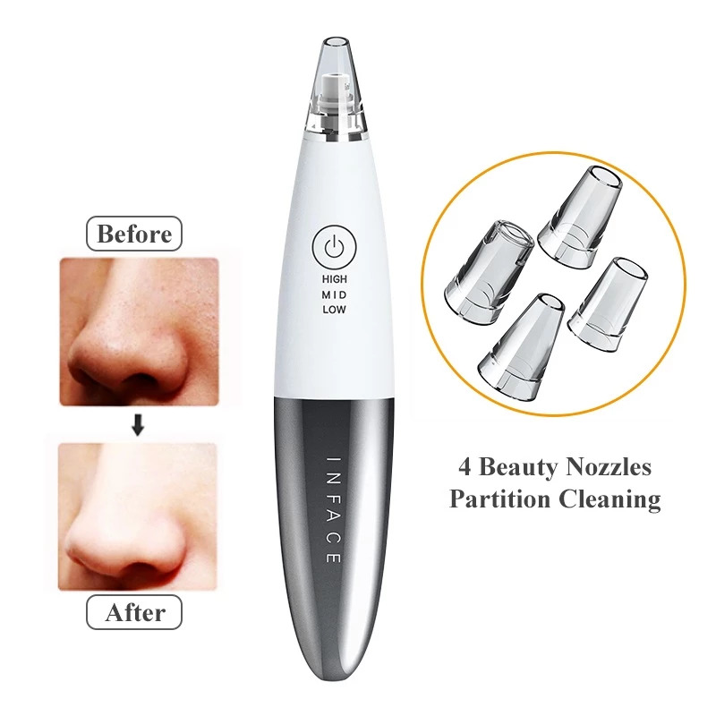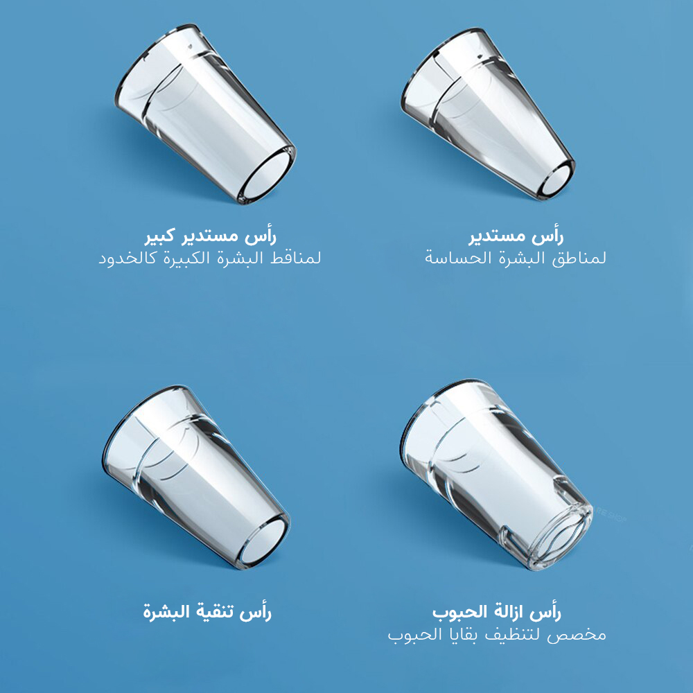 جهاز حديث صغير الحجم وخفيف الوزن للعناية بالبشرة لكلا الجنسين وامتصاص الرؤوس السوداء وإزالة وحب الشباب والبثرات الغير مرغوبة بطريقة آمنة وذكية وبتنظيف عميق للبشرة بتصميم محدب ليلائم بشرة الوجه بشكل أفضل ويقوي الشفط ويضغط المسام برفق ويمتص الرؤوس السوداء بفعالية.