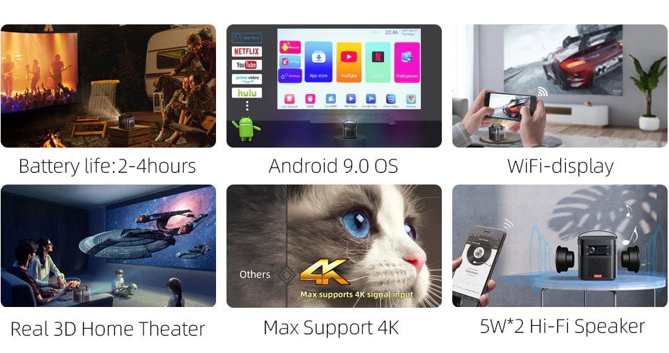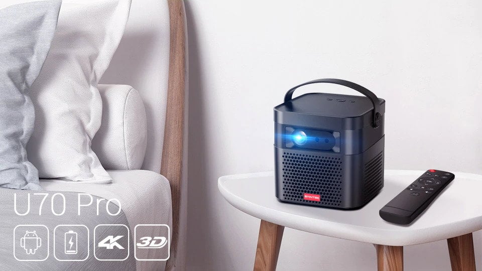 بروجكتر سنيمائي محمول بدقة Byintek Smart 3D DLP Projector UFO U70 Pro بمقاس عرض 180 إنش ،  يتميز بالجودة العالية وخفة الوزن وسهولة الحمل، ويمنحك عرض ورؤية واضحة بدقة  بتصميمه الأنيق و الحديث سيعطيك تجربة سينمائية رائعة في المنزل وليمكنك من مشاهدة الأفلام والاستمتاع بالحفلات.