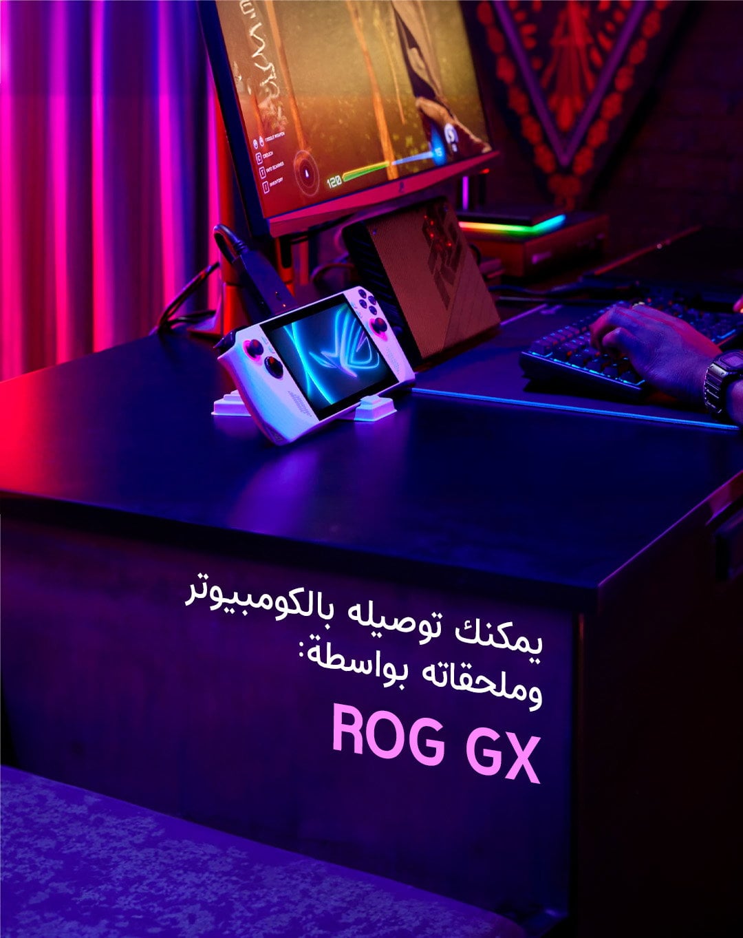 يمكنك اللعب في أي مكان باستخدام وضع اللعب المحمول أو عن طريق توصيل الجهاز بتلفزيونك وربط وحدات تحكم متعددة للعب مع الأصدقاء. بل ويمكنك تحويل ROG ALLY حتى إلى كمبيوتر للألعاب عن طريق توصيله بوحدة ROG XG mobile eGPU ، وبذلك يدعم الماوس ولوحة المفاتيح والشاشة والملحقات المفضلة لديك. استمتع بالتجربة الكاملة للألعاب في أي وقت وفي أي مكان.