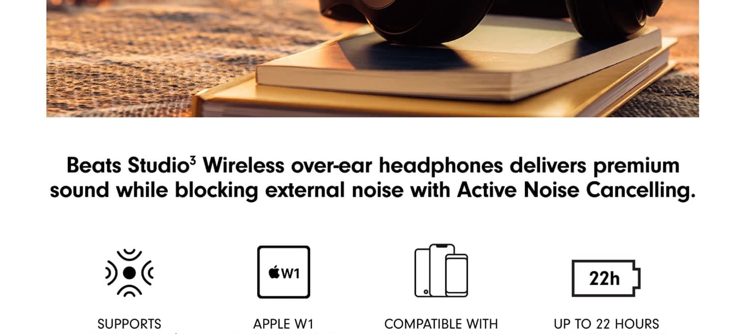 سماعات رأس بلوتوث 22ساعة أسود وذهبي بيتس Beats Studio3 Wireless Bluetooth Headphones