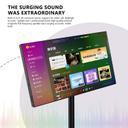 - شاشة متنقلة مجهزة بتكنولوجيا صوت محيطي ثلاثي الأبعاد مدمجة. تقدم هذه الميزة جودة صوت غامرة لأنشطة متعددة، بما في ذلك تشغيل الوسائط المتعددة. يهدف التصميم الصوتي إلى تقديم جودة صوت احترافية مع باس دقيق وصوت طرب عالٍ.