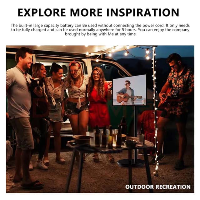 - شاشة متنقلة تعمل ببطارية بسعة 12 فولت و6000 ميلي أمبير، مما يوفر مصدر طاقة محمول للاستخدام المطول.