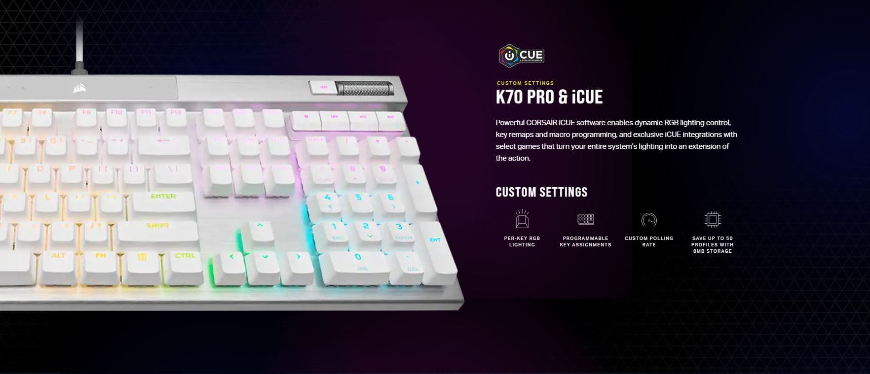 كيبورد قيمنق ميكانيكي بإضاءة RGB أبيض كورسير Corsair K70 Pro RGB Optical Mechanical Wired keyboard CH-910951A-NA