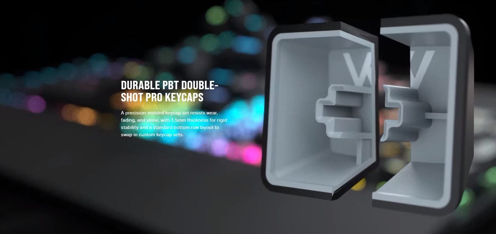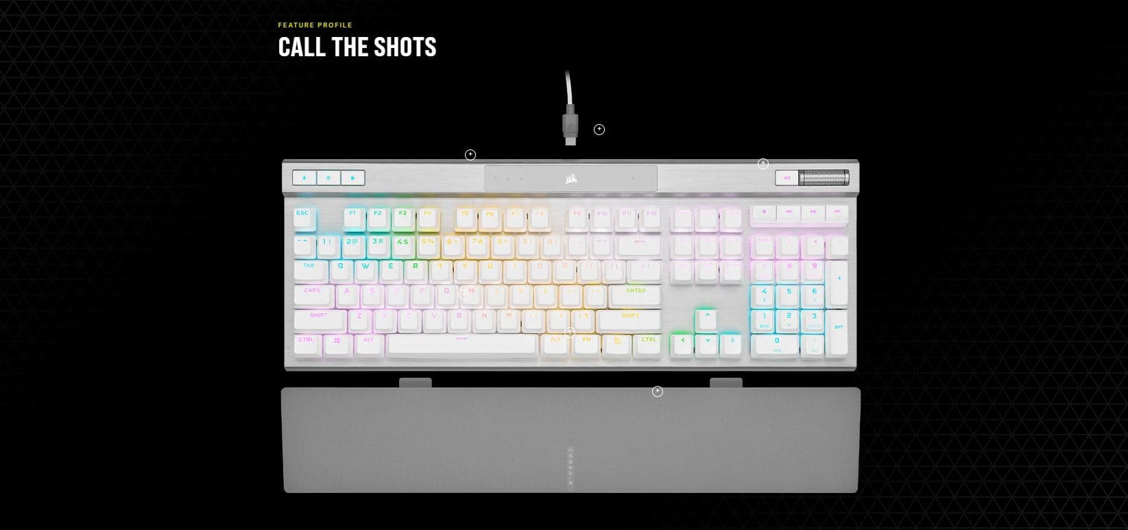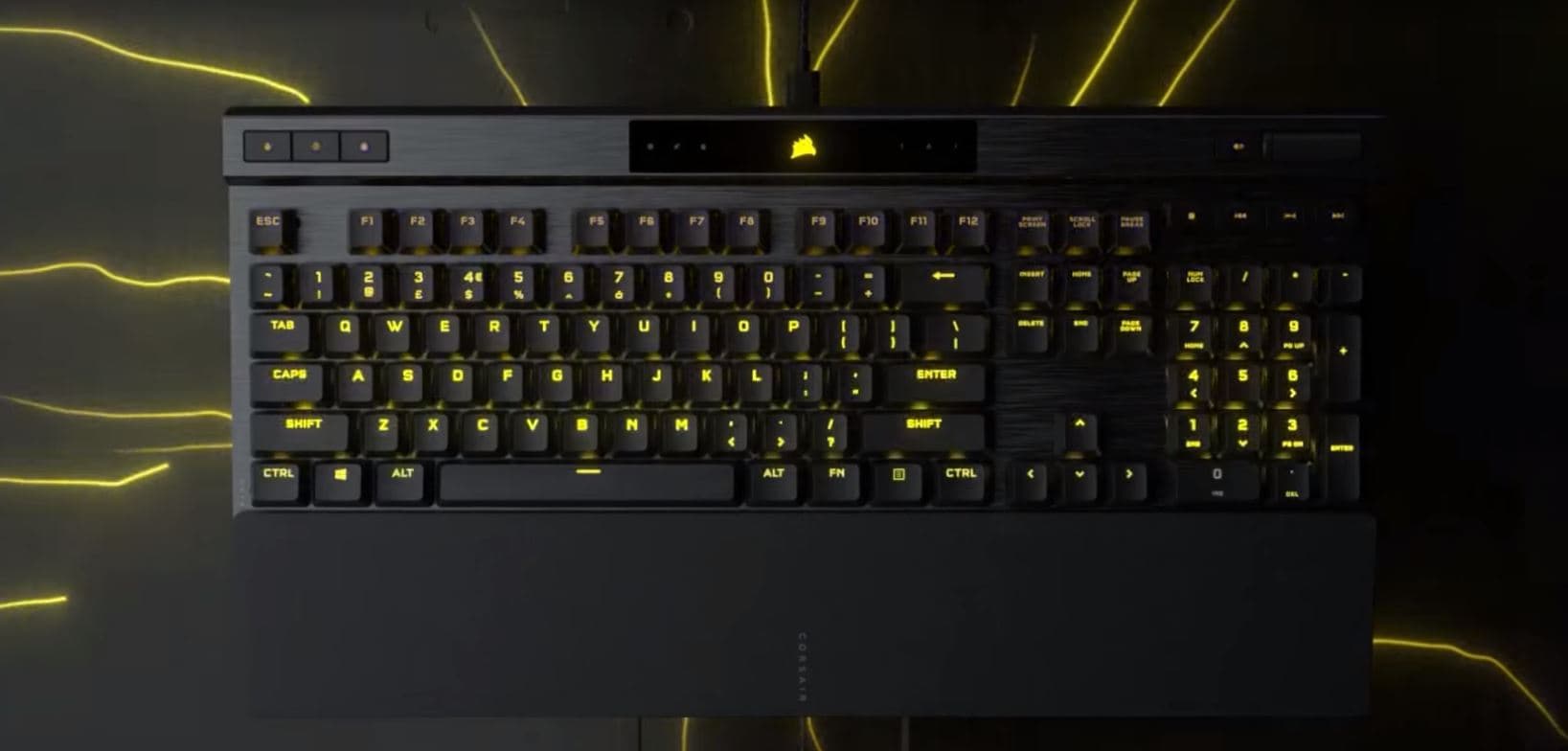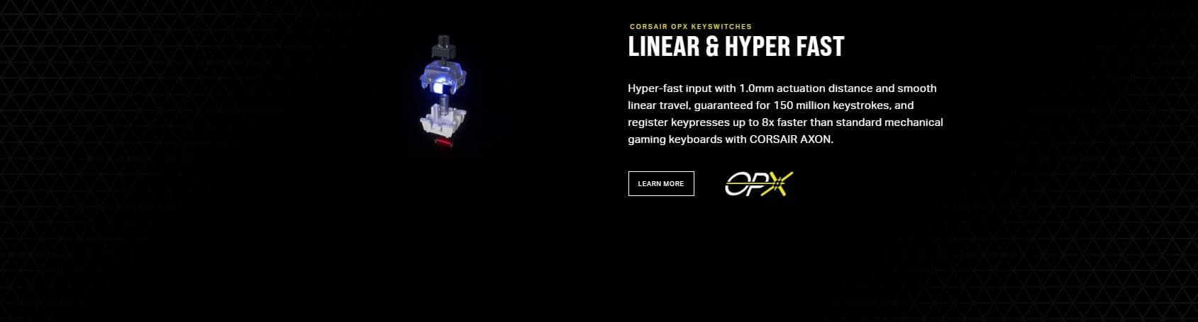 - كيبورد جيمنج بمقاس قياسي مزود ب 104 مفتاح ميكانيكي مضاء CORSAIR OXP فائق السرعة ومصنوع من pbt المقاوم للتآكل