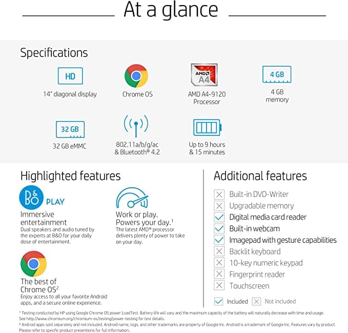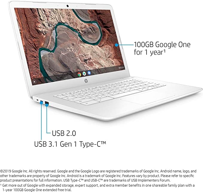 لاب توب 14 انش شاشة 180 درجة معالج ثنائي النواة 4 جيجابايت رام أبيض اتش بي HP Chromebook 14" Laptop with 180° Hinge HD SVA Anti Glare Non Touch Display