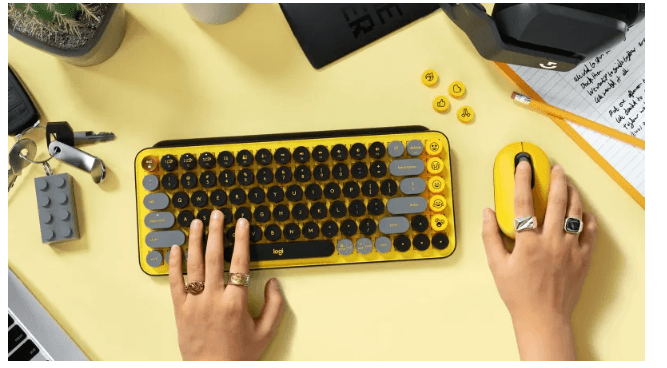 أضف قطعة عصرية وجذابة إلى جهازك الخاص وتمكن من الكتابة بكل سهولة وأريحية وحافظ على طاولة العمل الخاص بك خالية من الأسلاك وتعقيدها وذلك نن من خلال لوحة كمبيوتر لاسلكية Pop Keys Wireless Mechanical Keyboard With Customizable Emoji Keys من Logitech والتي تتميز بتصميمها الجميل وأداءه العالي وجودة المواد المصنوعة منها وسهولة أستخدامها ووصلها وفعاليتها الكبيرة وحجمها المناسب وأزرارها الناعمة والملونة وقدرتها في تقليل فوضى الأسلاك