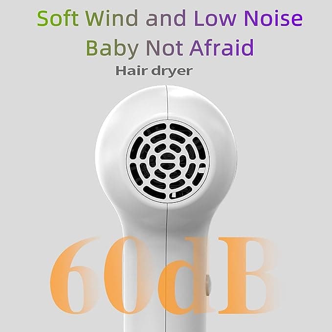 - نظرًا لأن شعر الطفل نسبيًا ضعيف، فإن مجفف الشعر الصغير للأطفال يستخدم تحكمًا حراريًا ذكيًا لإخراج هواء حراري منخفض، مما يضمن سلامة شعر الطفل وبشرته، وفي نفس الوقت يوفر ضوضاء منخفضة (فقط 60 ديسيبل) لحماية سمع طفلك أثناء تجفيف الشعر.