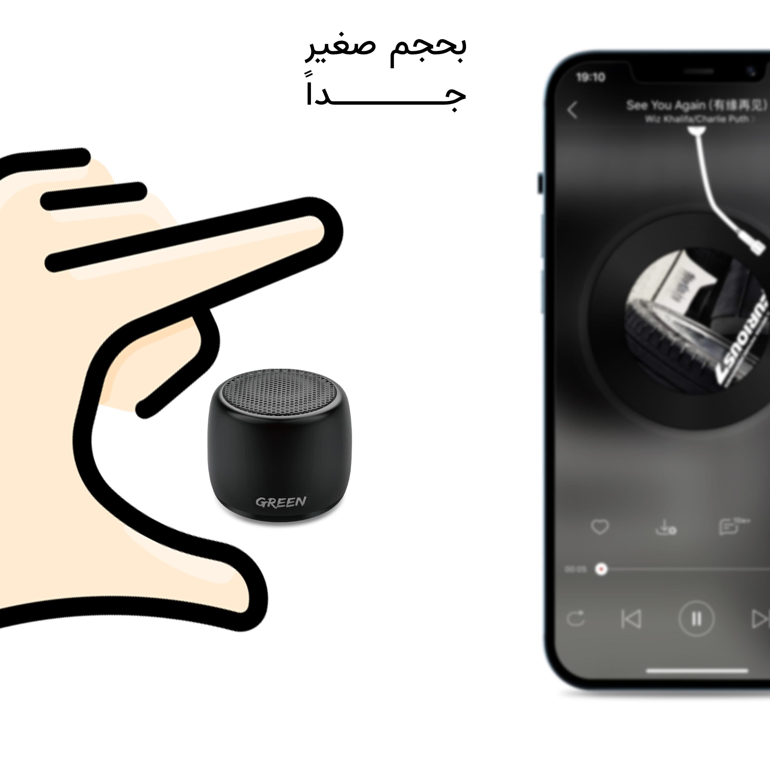 مكبر صوت صغير ميني سبيكر Green Mini Speaker ، يتميز بحجمه الصغير مع بطارية قابلة للشحن بالإضافة إلى صوت نقي وعالي الجودة يعمل عن طريق البلوتوث