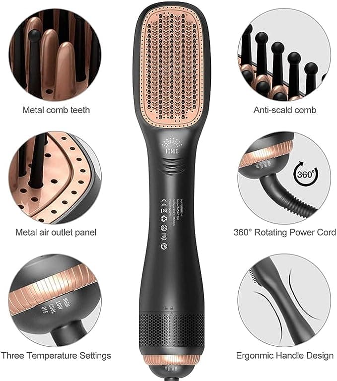 - يحتوي مشط كهربائي جوي على ثلاث وظائف أساسية في جهاز واحد، مما يتيح لك تجفيف الشعر الرطب، وزيادة الحجم وتشكيل الشعر الجاف، أو تمشيطه ببطء لتنعيمه وإزالة التكسر وتلميعه ليظل ناعماً.