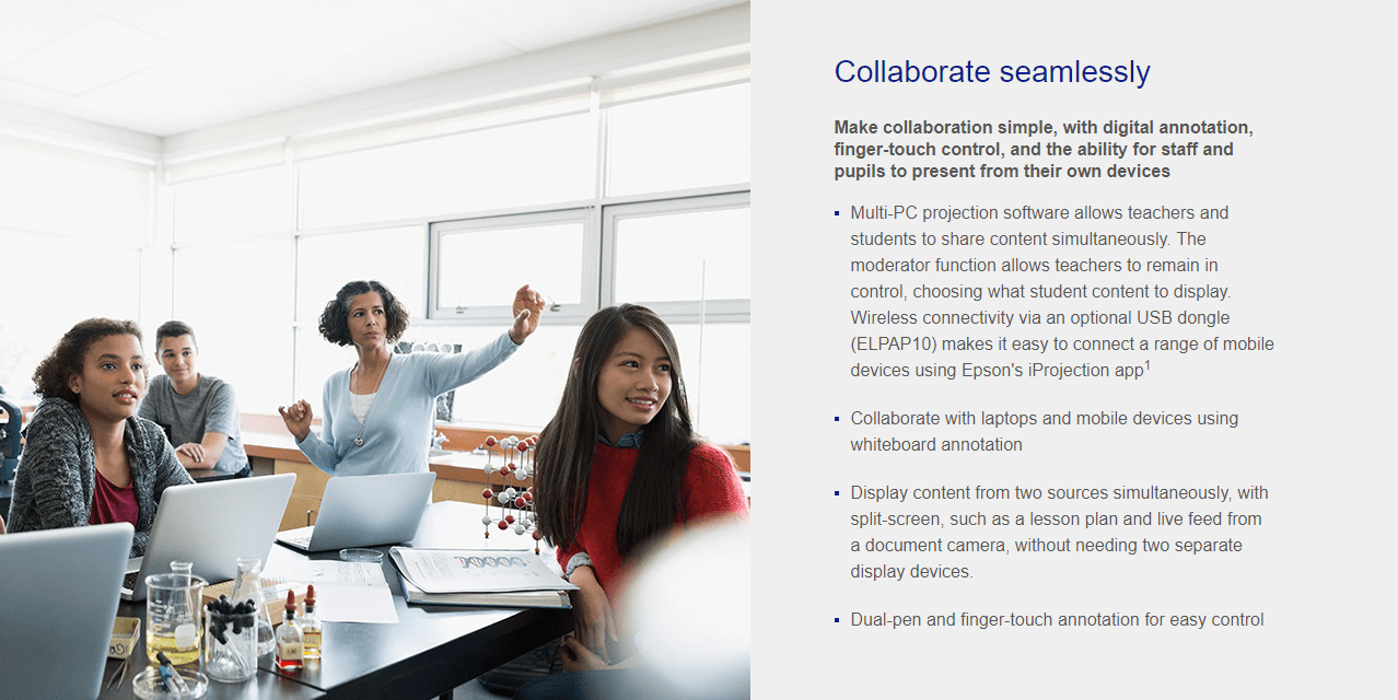 تمكن من اضفاء لمسة احترافية أثناء تقديمك للعروض التقديمية أو مشاهدة الأفلام والمسلسلات بحصولك على بروجكتر صغير من Epson بروجيكتور محمول للاستمتاع بجودة صورة عالية لتمنحك تفاصيل مرئية بوضوح.