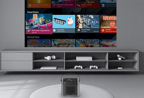 - بفضل نظام التشغيل يسمح لك البروجكتر بالوصول إلى ما يقارب 500 تطبيق ولعبة مختلفة