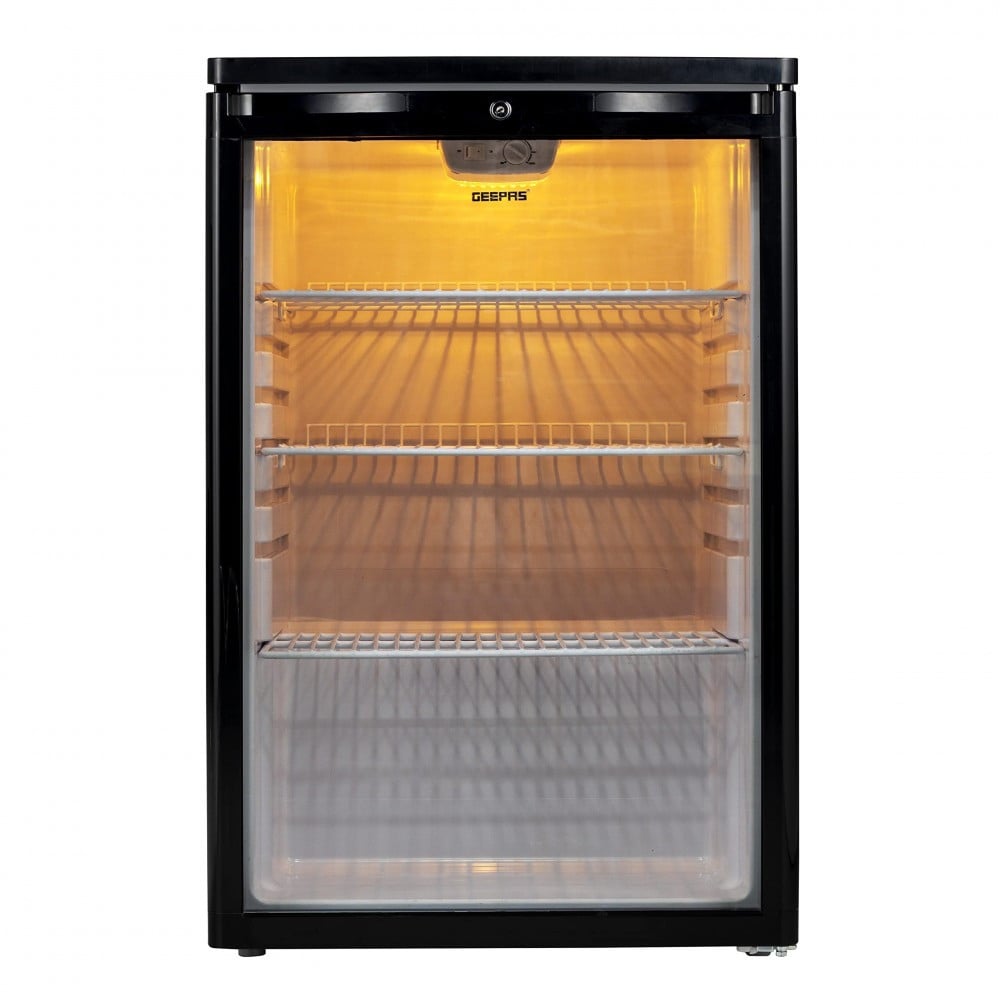 - ضوضاء منخفضة يتميز مبرد العرض ذو الباب الواحد من Geepas بضوضاء منخفضة جدًا أثناء تشغيله