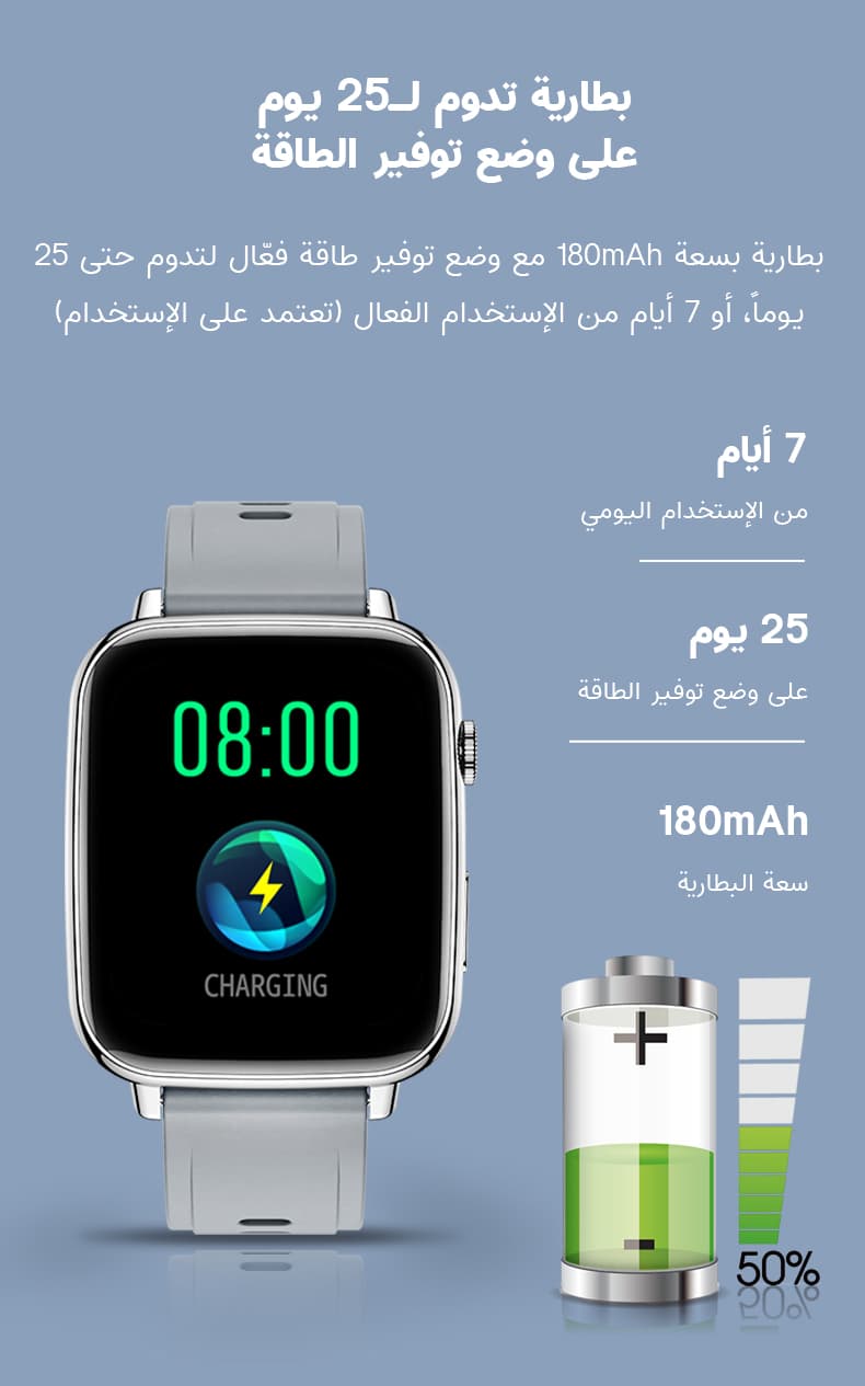 - بطارية ليثيوم بسعة كبيرة تصل الى 180 mAh