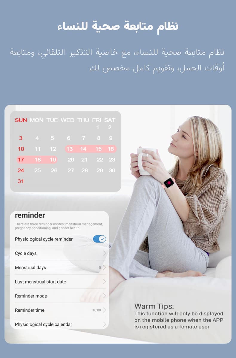 - ميزة تتبع الدورة الصحية للمرأة