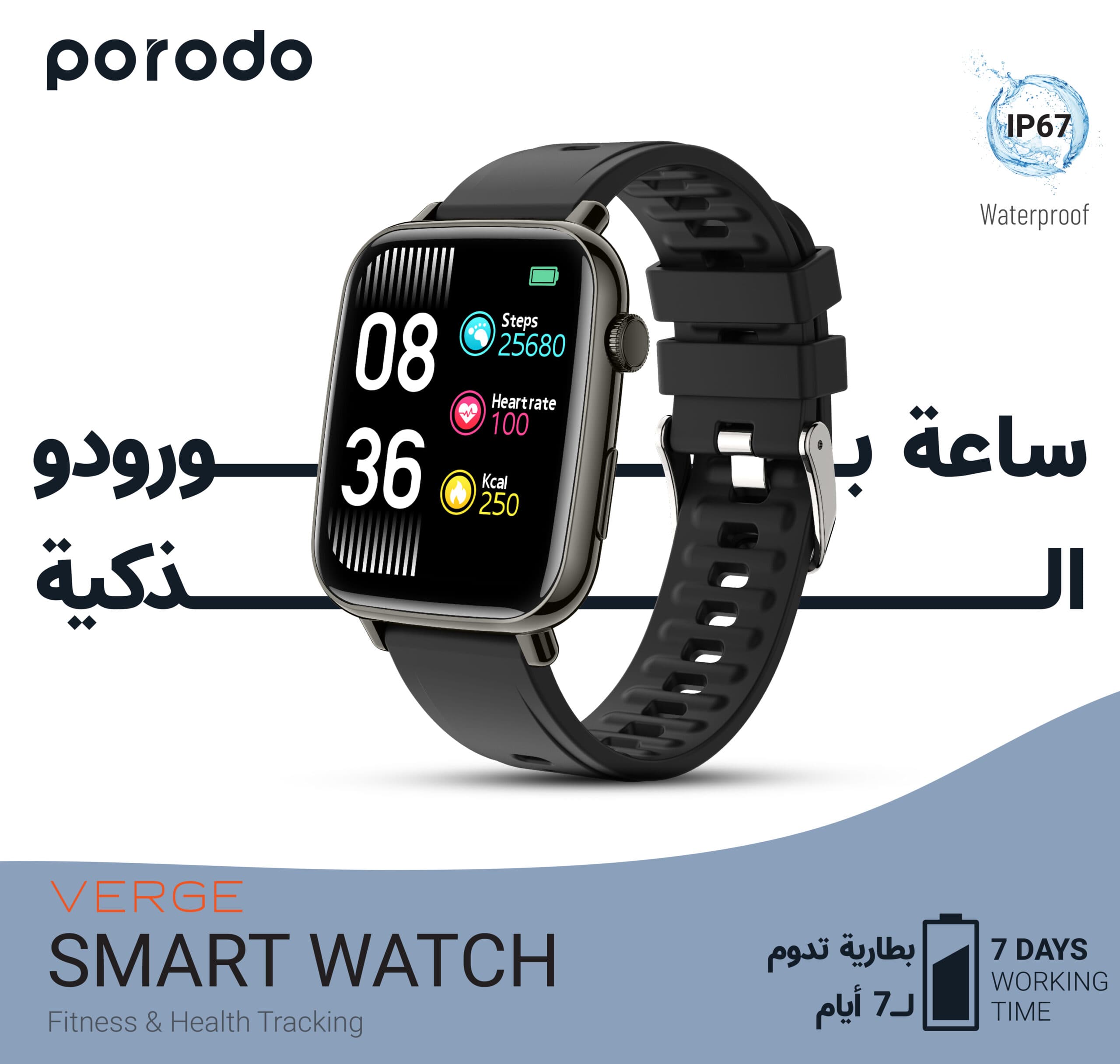 ساعة يد ذكية بورودو فيرج Porodo Verge Smart Watch with Fitness & Health Tracking