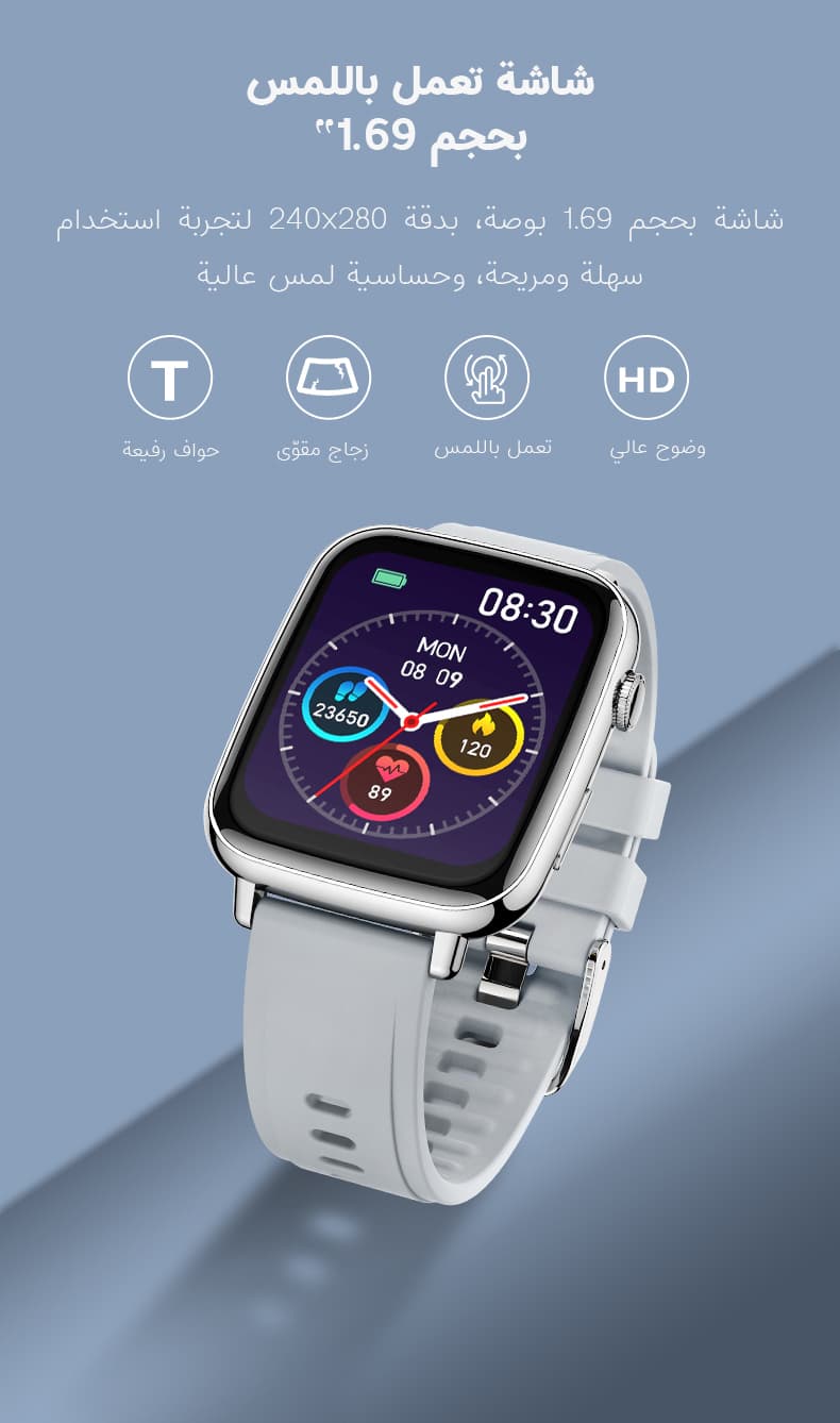 - شاشة تعمل باللمس بدقة HD و بحجم 1.69 انش