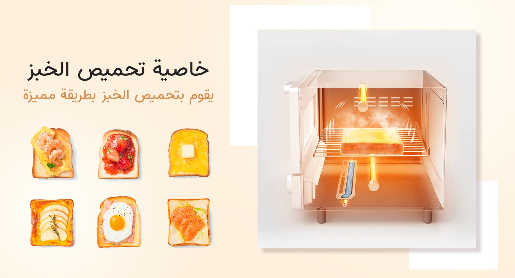 - ضع مود التحميص لتحميص الخبز بالبخار لعمل طبقة مائية على سطح الخبز مما يجعل الخبز أكثر نعومة ولذيذًا