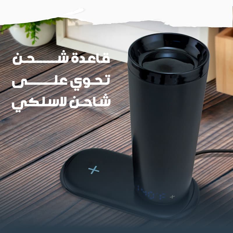 - قاعدتين شحن للكوب و الأجهزة الذكية التي تدعم الشحن اللاسلكي