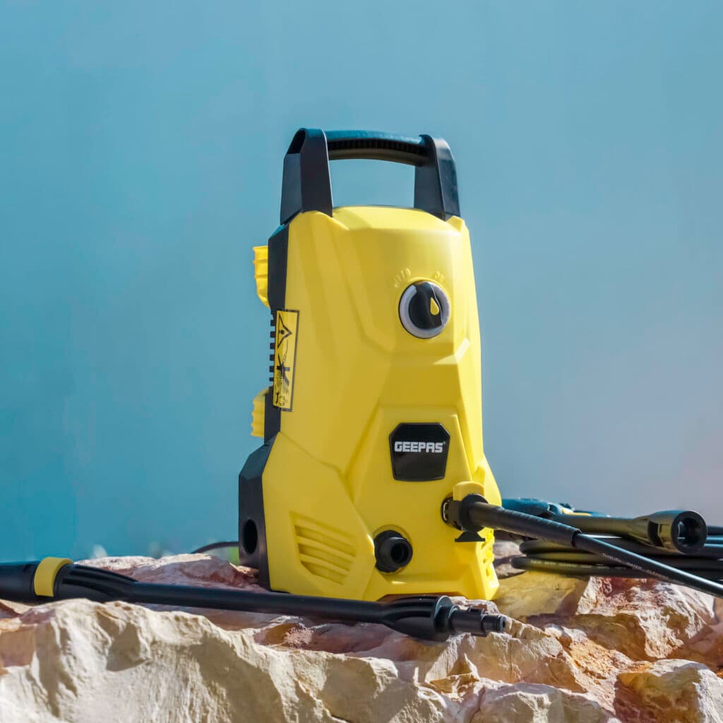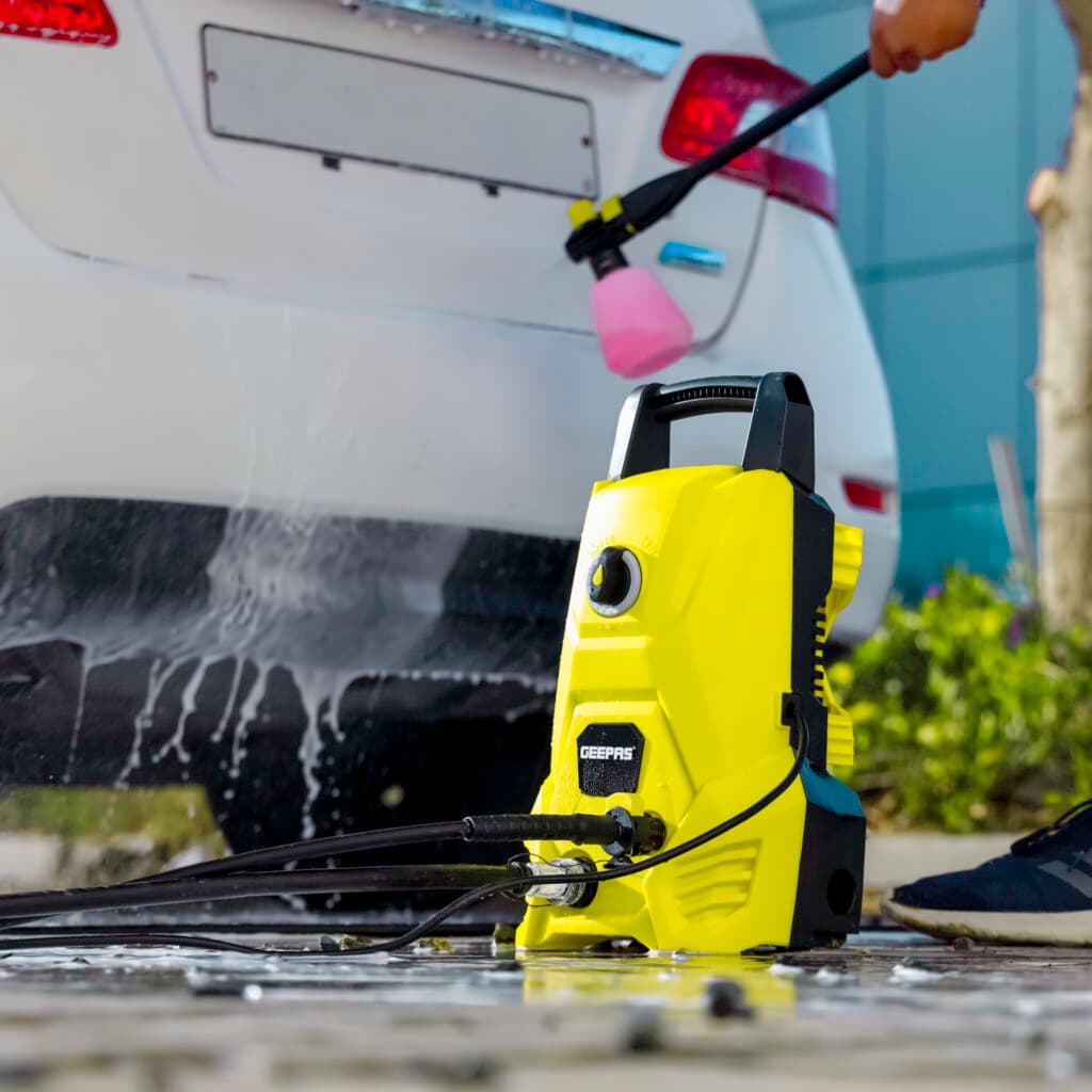 مضخة غسيل السيارات جيباس بقوة 105 بار 1500 واط Geepas High Pressure Washer ، تريد الحصول على تنظيف أعمق للسيارة وأرضيات الحدائق وغيرها بسرعة وبدون عناء يمكنك الحصول على ماكينة غسيل السيارة من Geepas ماكينة غسيل السيارة مثالية وبميزة التنظيف الفعال بالماء المضغوط