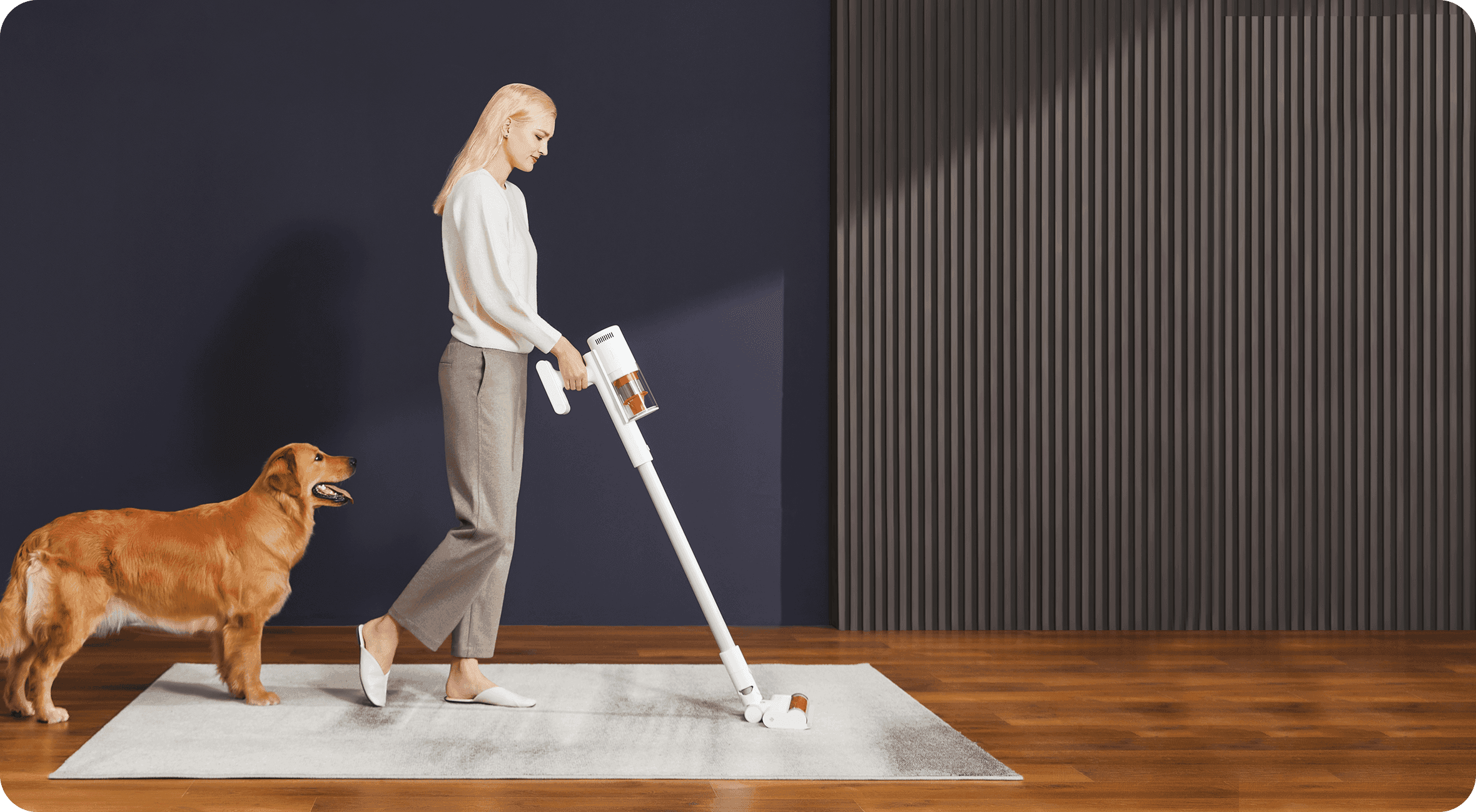 - المكنسة الكهربائية مناسبة للأرضيات الخشبية والبلاط والسجاد.