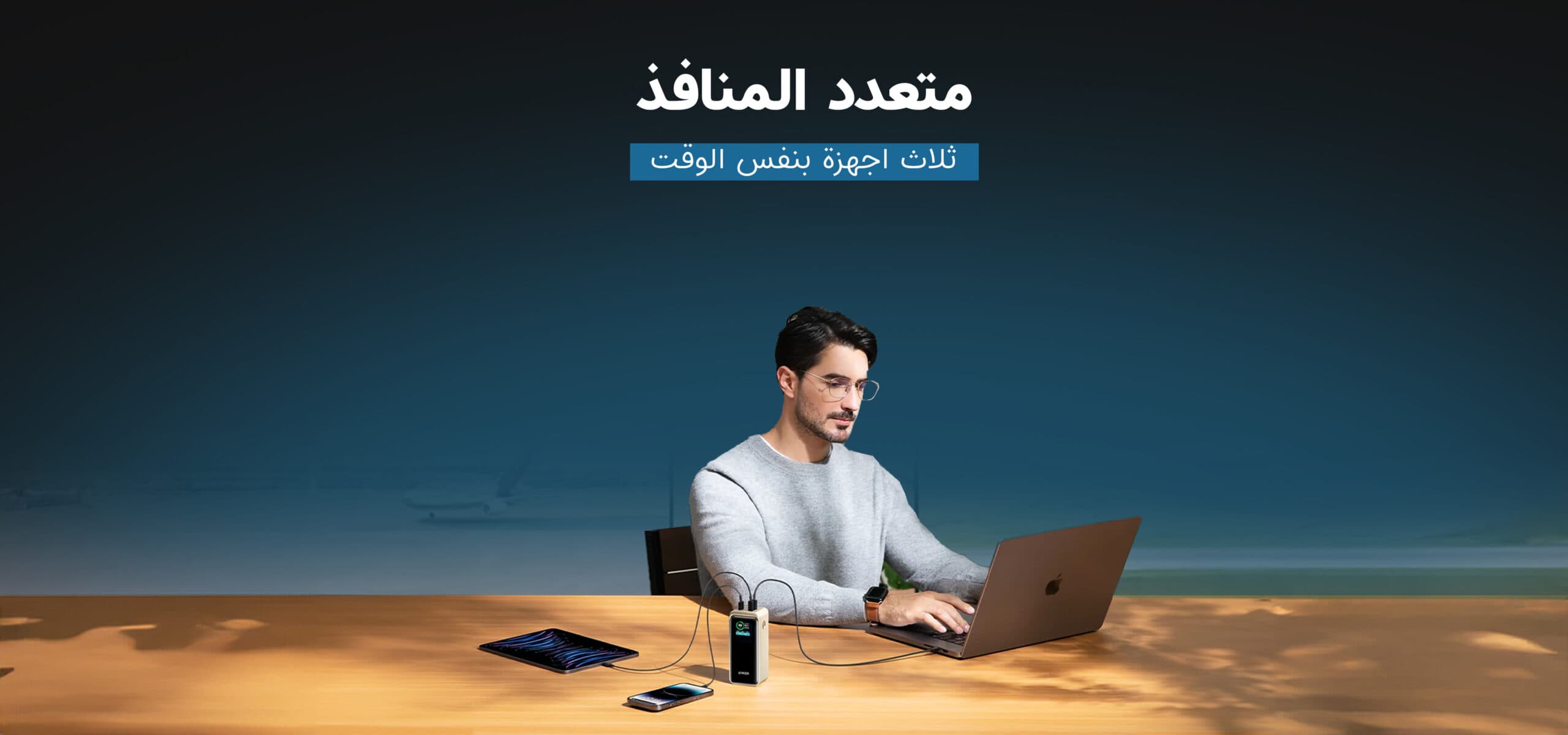 - إجمالي قوة 200 واط: مزود بمنفذي USB-C قويين ومنفذ USB-A بإجمالي قوة 200 واط، حيث يمكنك شحن جهازي كمبيوتر محمول بسرعة بقوة 100 واط لكل منهما بكفاءة قصوى.