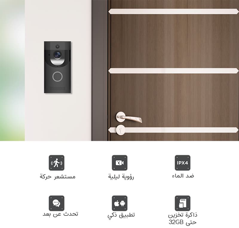 - دقة الجرس الذكي: HD 1280 x 720P@30 fps