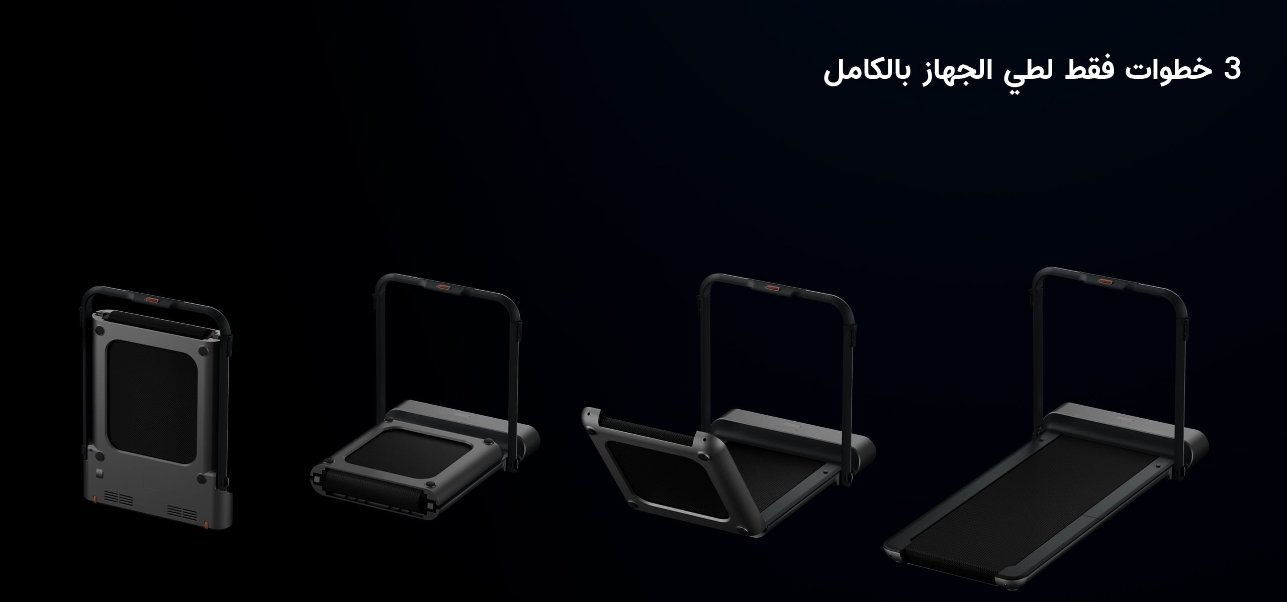 يشغل الجهاز مساحة أقل بنسبة 90٪ مقارنة بجهاز المشي التقليدي ويمكن طيه وتخزينه بسهولة بفضل التصميم المزدوج القابل للطي والعجلات الدوارة السلسة