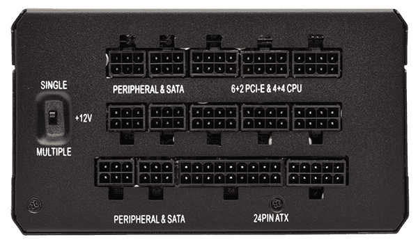 - You can choose single +12V rail mode that provides full power to connectors or multiple +12V rail mode that provides protection for each connector