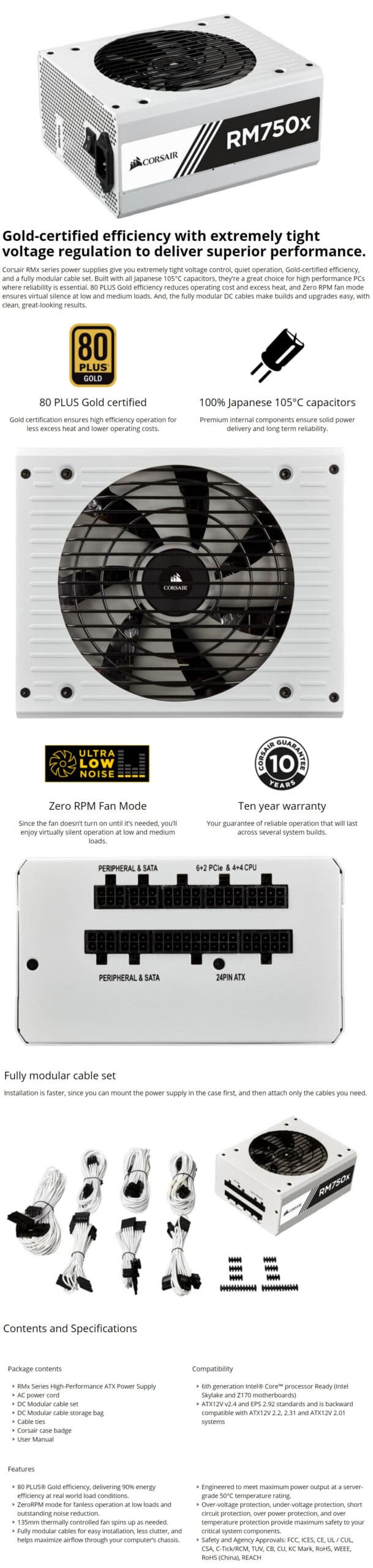 Corsair RMx Series RM750x — 750 Watt 80 PLUS Gold Certified Fully Modular ATX Power Supply (UK) — White | CP-9020155-UK / CP-9020187-UK