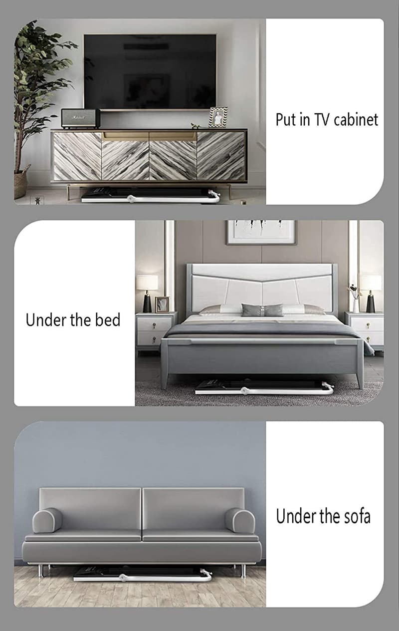 - The electric treadmill is an easy-to-use and store device, as it is foldable and very slim, allowing it to be placed under the bed or desk.