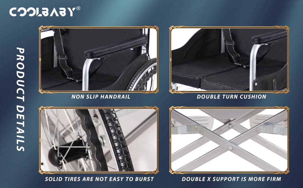 Cool Baby COOLBABY QBLY01 Lightweight Folding Aluminum Manual Wheelchair Thickened Elderly Medline Wheelchairs Adjustable Seat Cushion