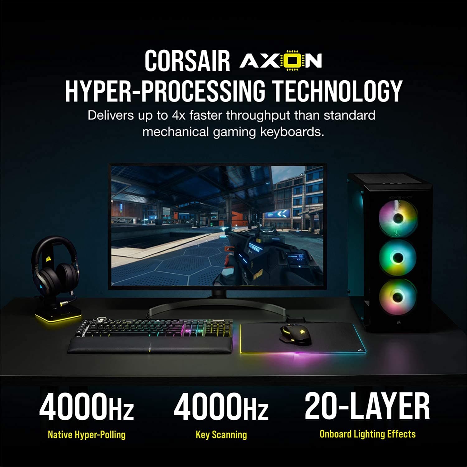 - AXON technology provides you with 4 times faster input response speed compared to other keyboards, making your gaming experience faster and more accurate.