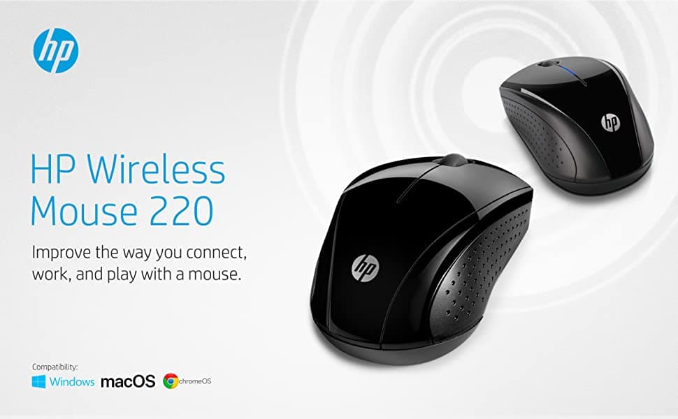 HP Wireless Mouse 220 2.4 GHz Blue LED 1300 DPI Optical Sensor Up to 15 Months Battery Life Black | 3FV66AA#ABB