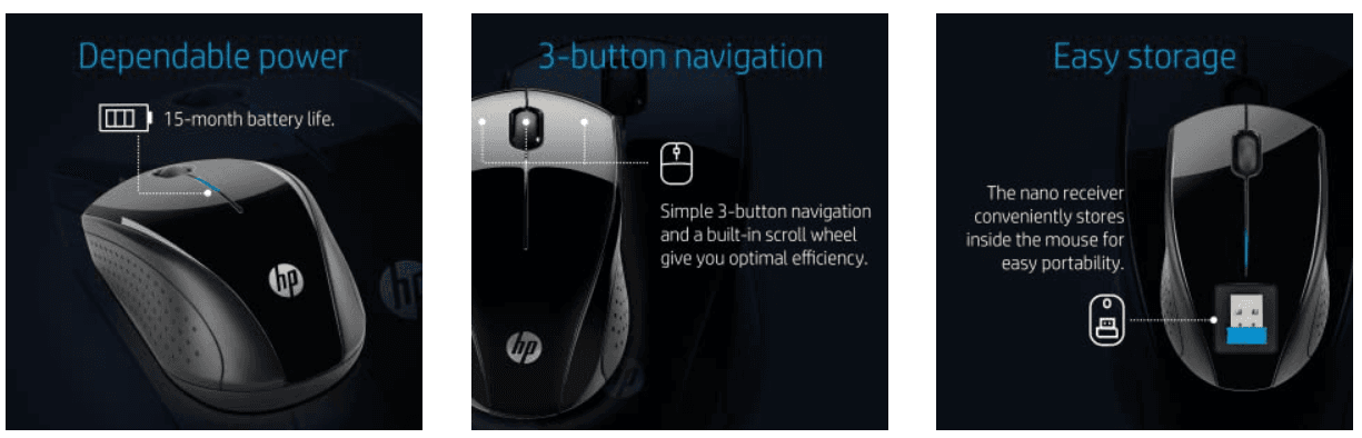 Features of the HP Wireless Mouse: