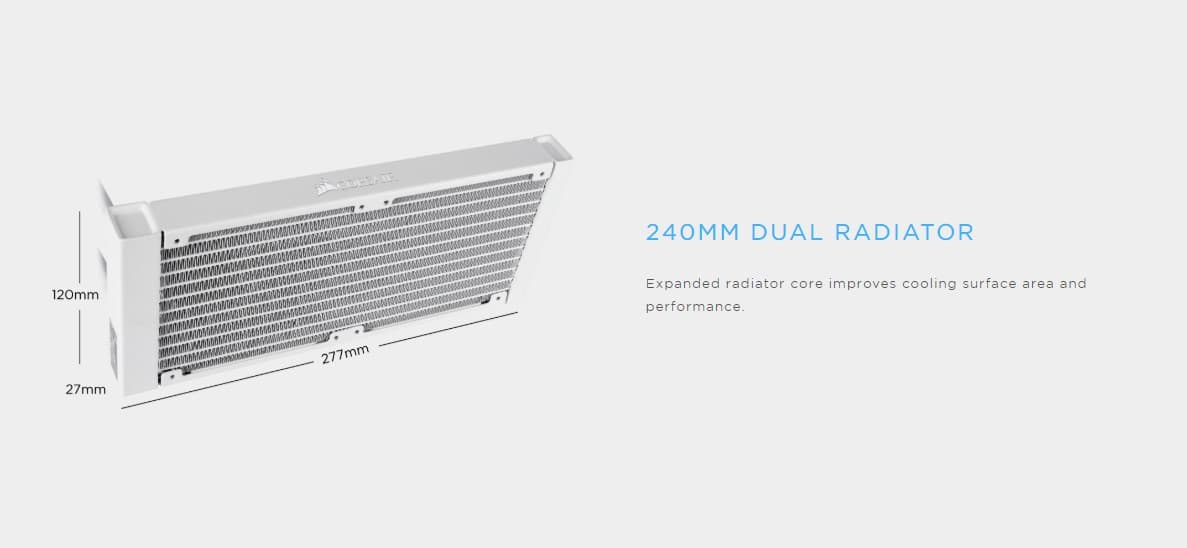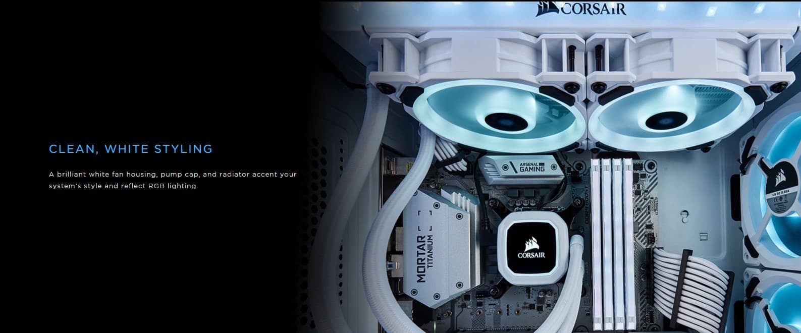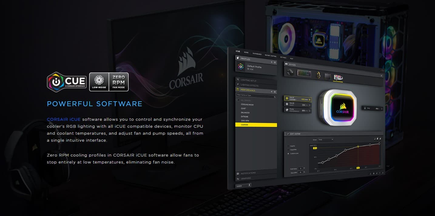 - With the iCUE software, you can have full control over lighting effects, monitor the cooler, liquid temperature, fan speed, and pump speed.