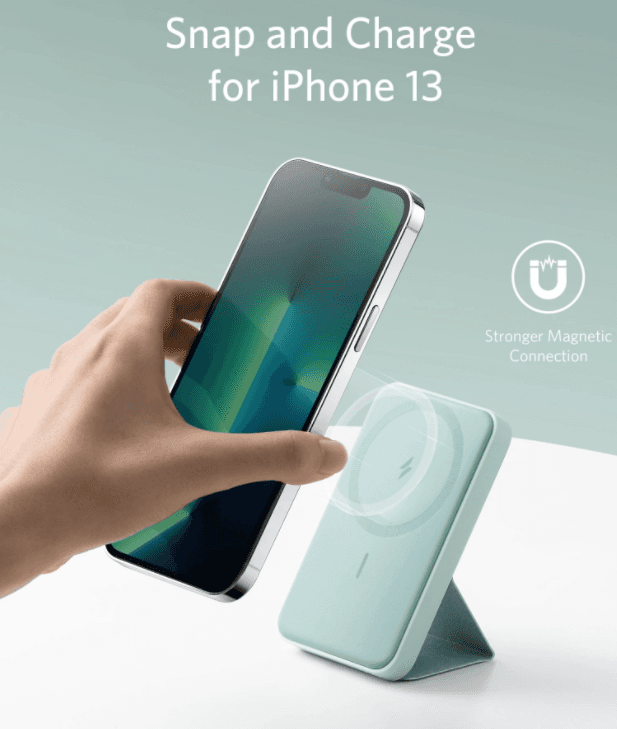 Anker 622 MagGo Magnetic Power Bank Battery 5000mAh Foldable Wireless Portable Charger USB-C for iPhone 13/12 Series Misty Blue | A1611 Blue