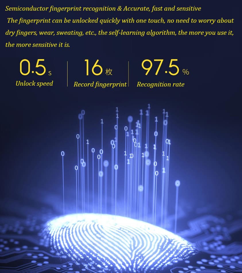 - Fingerprint Capacity: It can store up to 16 fingerprints for authorized individuals to unlock the lock, making it ideal for family use or in offices and companies.