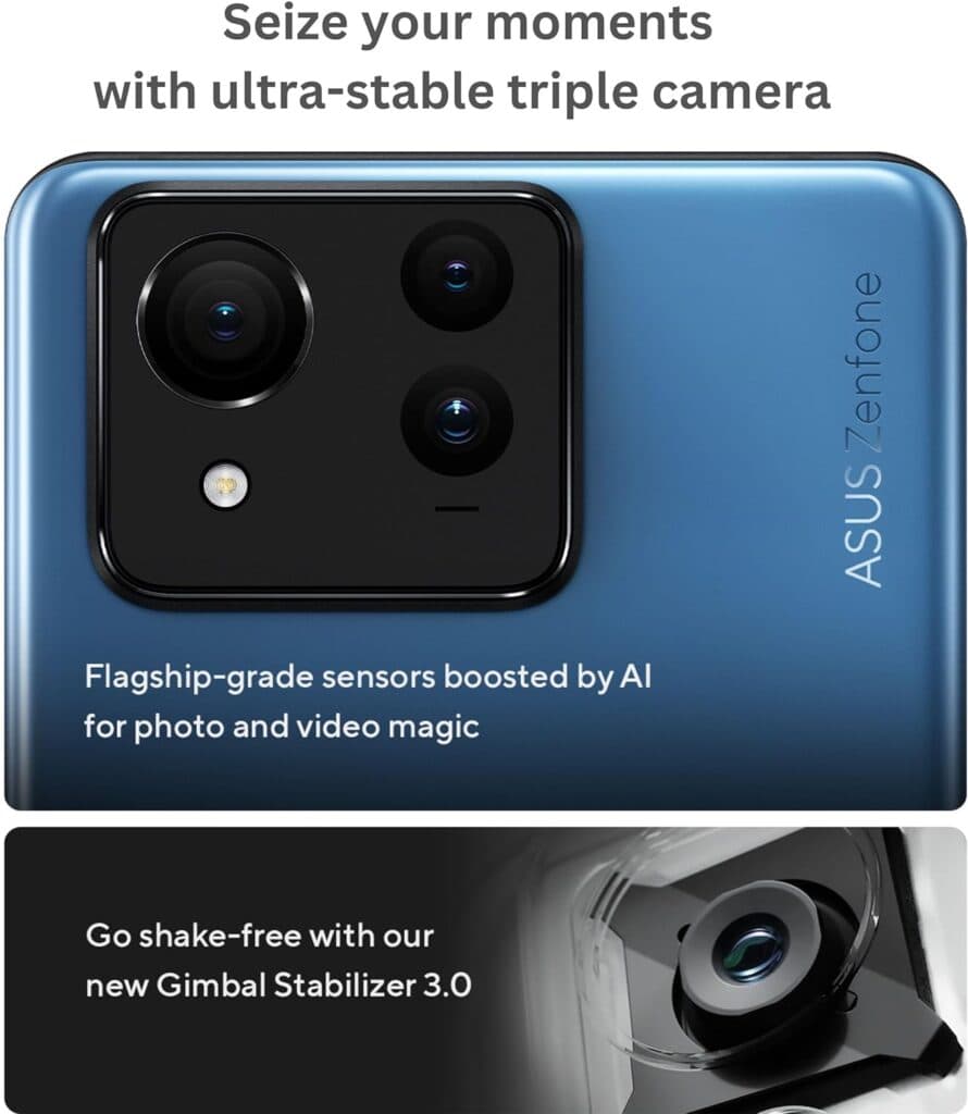 The Asus Zenfone boasts the powerful Qualcomm Snapdragon 8 processor of the third generation with 4nm manufacturing technology, and eight cores, ensuring a smooth user experience and excellent performance. The phone comes in various memory and RAM configurations to suit your needs.