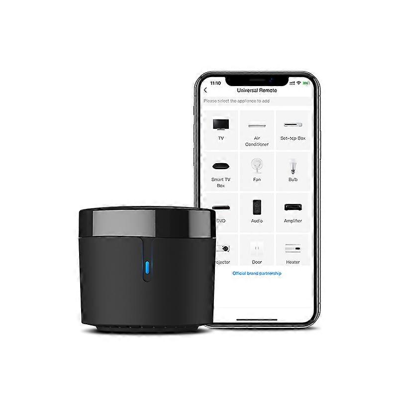 The BroadLink RM4 mini is a compact Wi-Fi-enabled universal infrared remote control hub. It replaces multiple traditional remote controls by consolidating control of various infrared home appliances into a single smartphone application or voice command interface.