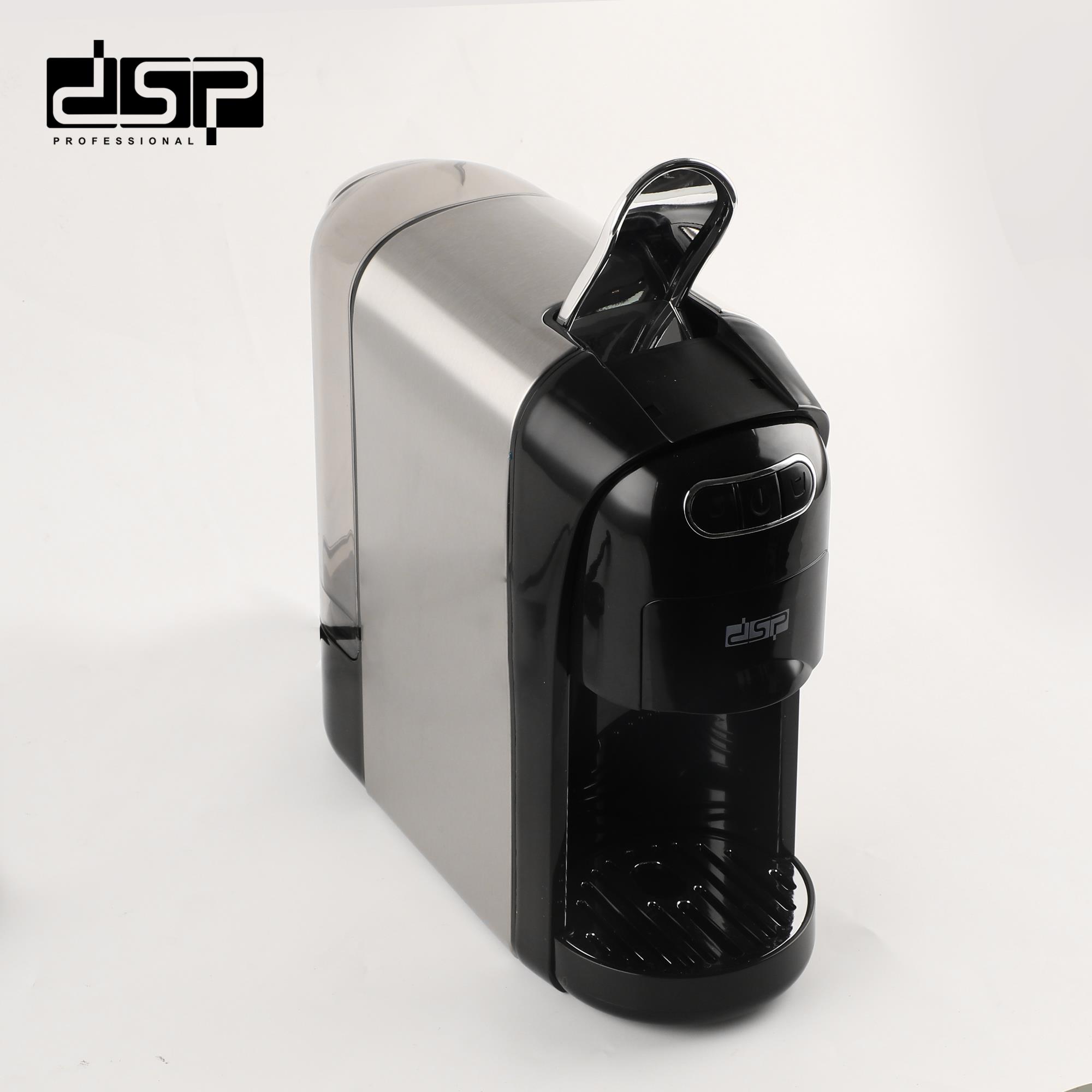 The DSP KA3118 is a high-performance capsule coffee maker featuring 1400W power and a 20 bar water pump designed to prepare unique-tasting coffee with rich flavor. This versatile coffee maker is compatible with Nespresso, Dolce Gusto capsules, and ground coffee, offering flexibility for different coffee preferences.