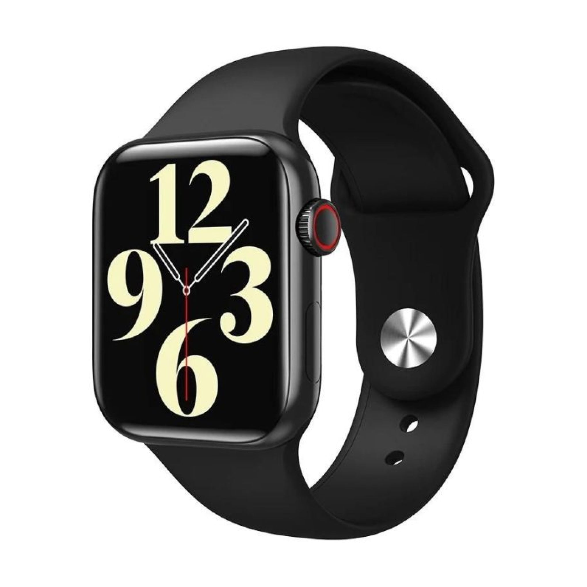 The smartwatch features a 45 mm case size with a high-quality silicone construction. The wristband is designed to be durable, practical, and comfortable for extended wear throughout the day.