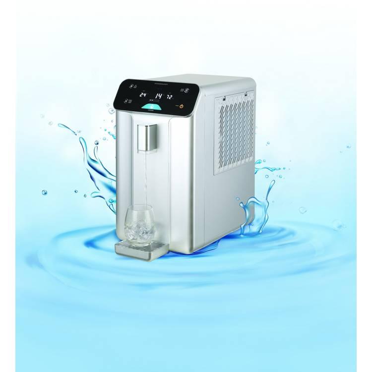The water dispenser pulls water from humidity in the air and converts it into organic water. Water production takes a few hours depending on the humidity of the room it is placed in.