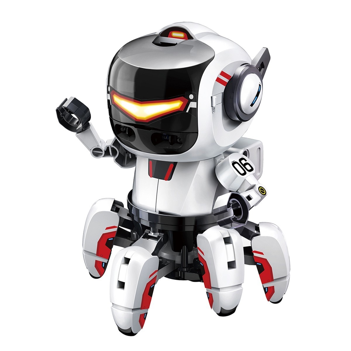 The robot features a flexible body consisting of six legs, giving it the ability to walk in various ways. The body can rotate at a 360-degree angle, allowing complete freedom in movement and direction. The mechanical design combines fun and learning, as children can assemble the robot themselves, enhancing their understanding of mechanical principles and robotics.
