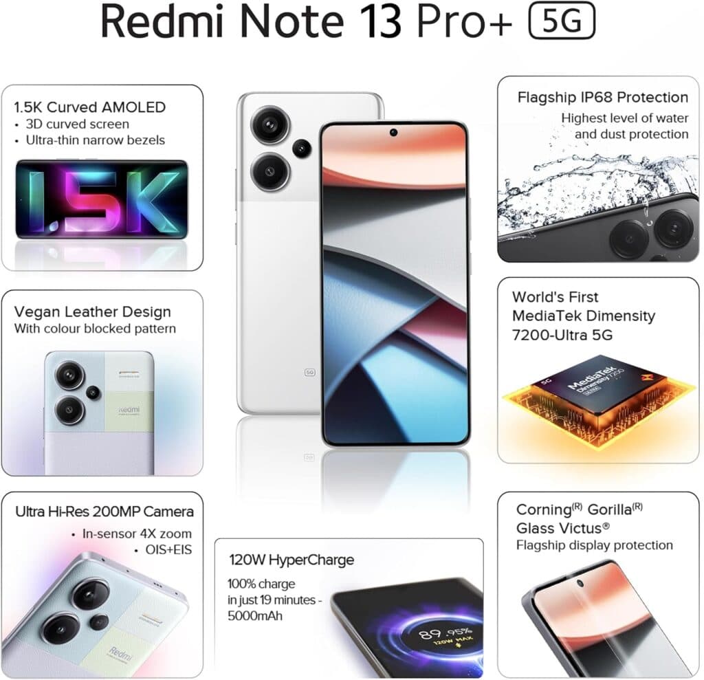 The Xiaomi Redmi Note 13 Pro+ 5G Smartphone offers amazing power, elegant design, a stunning display, and a remarkable camera, making it one of the best smartphones currently available in the market.
